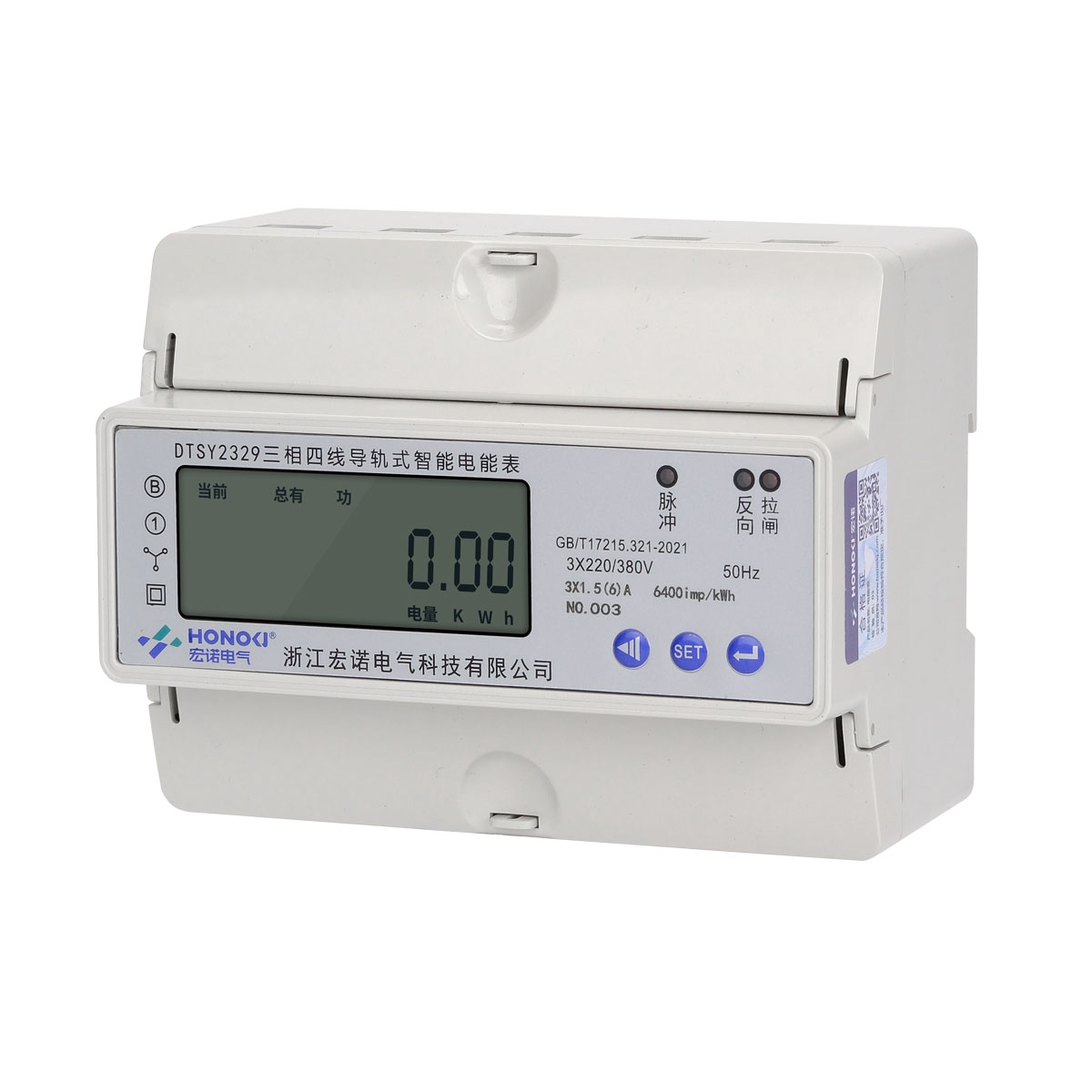 DTSY2329三相四线导轨式智能电能表(485)是一款集测量、LCD显示、RS485通讯于一体的电力仪表,可以测量电网有功功率、电压、电流、功率、功率因素、频率等电参数,可进行远程拉合闸。通讯接口支持DL/T645-2007、MODBUS-RTU通讯规约。该产品适用于家庭用电监测、商业楼宇的电能管理、以及中小型工业设备的能耗统计。